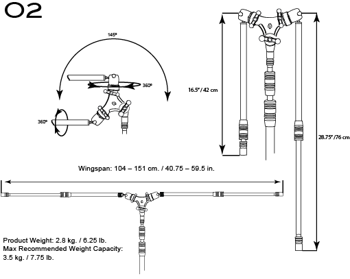 Orbit Series O2 orbital booms feature a unique dual-arm design – each arm equipped with the proprietary ORBIT ball swivel mechanism – making it one of the most versatile booms on the market. Applications across multiple disciplines are now a reality; today it is the ‘go-to’ stand for stereo or dual miking assignments such as grand pianos, snare drum (top & bottom), guitar and vocals, choirs, big bands, and orchestras – Tomorrow it is the center of a full A/V multimedia or Social Media solution holding lights, cameras, microphones. Orbit 2 booms do the work of two stands, freeing up resources when multiple devices are called for and space is limited.Dual boom arms are only part of the ORBIT 2 story. Anchoring ORBIT 2 is a novel center swivel that provides an additional 45° of left-right motion to the boom arms. The Compass Point ball swivel housing provides each O2 boom arm with precise, stable positioning whenever the arms are engaged. And IO Quick-Couplers terminate the end of every O2 arm, offering twice the versatility of conventional booms in a fraction of the time it takes for normal setups.